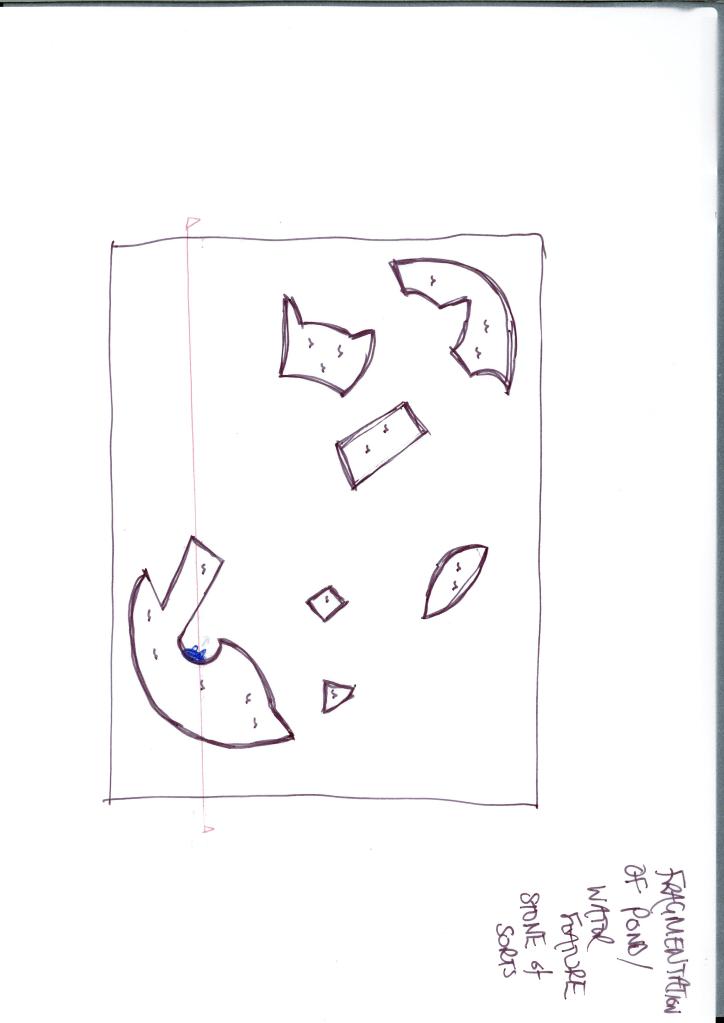 I chose fragmentation, and in the plan view, I envisaged a pond. But then frozen in time, like ice smashing across the surface.