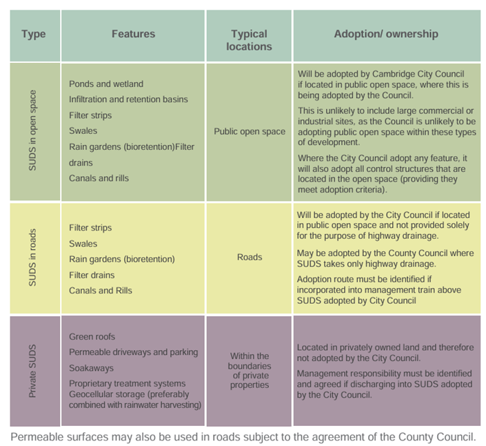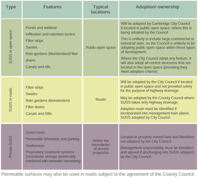 | Source control e.g. green roofs, rainwater harvesting, permeable paving, other permeable surfaces | YES | YES | YES | YES | YES | YES | NO |